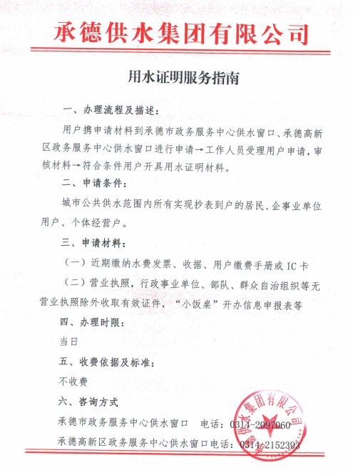信息來源:承德供水