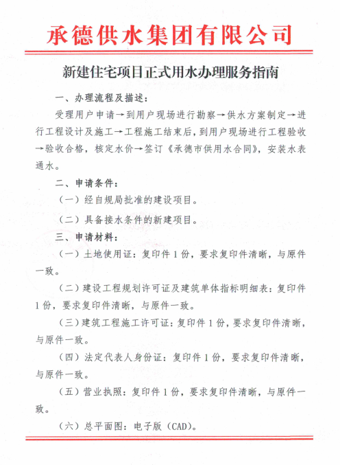 新建住宅項目正式用水辦理服務(wù)指南